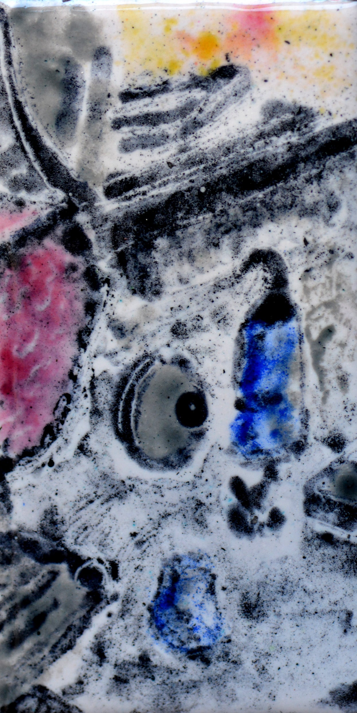 Based on a series of Watercolor I drew this summer, an experiment of painting working with transparent enamel.