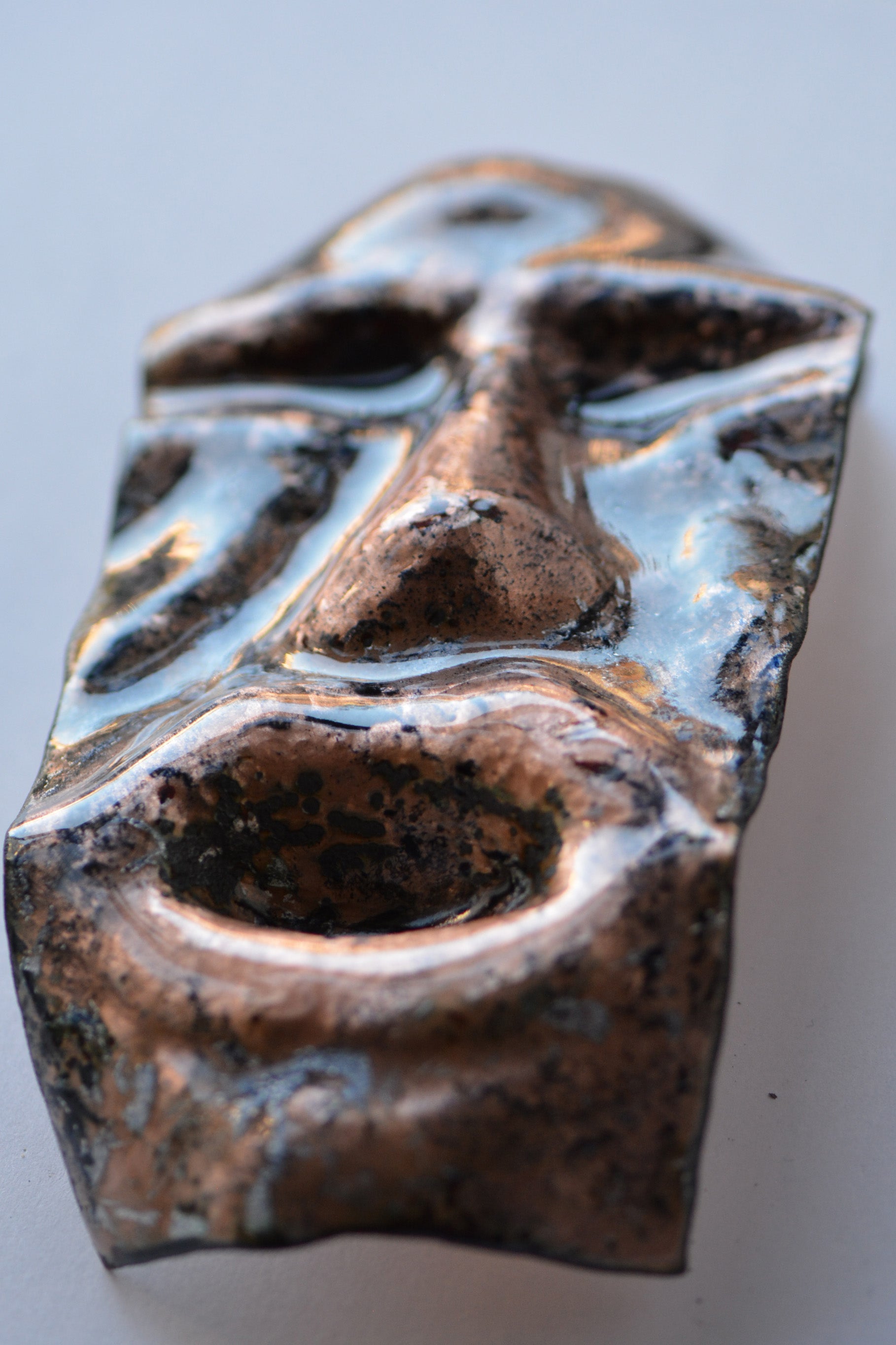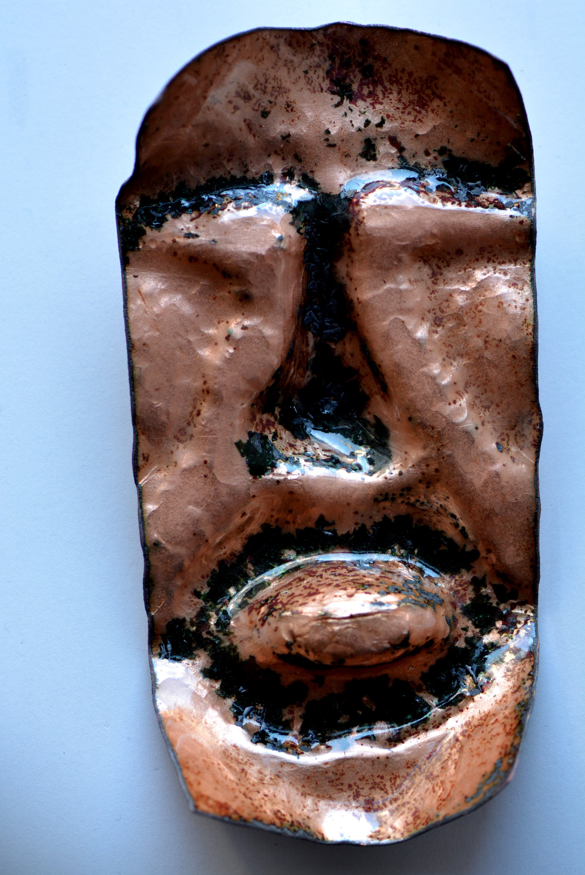 In recent years I watch with interest new discovery and speculation of history has much more to offer than the one we know. Stories of ancient civilization lost on time, where traces start to resurface now within a climate change environmental degradation both in arctic areas than equatorial rain forests. Departing from those same traces of sculped rocks represent faces and traces of ancient civilization I start to see the face of people. How to represent them. Then I started as experiment to try trace their face expression on a piece of copper and trying to sculpt the metal reproducing those same lines. The use of the hammer form the material in two ways: one one side expand and deform the surface, of the other leave traces that represent a rich texture. It was unavoidable for me to start sculpting faces of people and trying to represent facial expression. I started to explore feelings like wonder, sadness, happiness and the process it is only in its infancy. I am attracted by how ancient civilization, but more in general cultural perception tried to represent their own people. Their own culture and symbolism. That is the path in which this project is aimed.